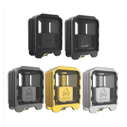 This image displays the BLAZE brand’s tank or atomizer, characterized by an extremely rugged, cage-like design. The device features a